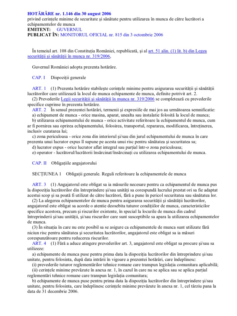 vizitati articolul complet aici : https://protectia-muncii-ieftin.ro/legislatie-ssm/ 108 din constituţia româniei, republicată, şi al art. Romanian budget policy in the context of the eu integration h.g. Hg 1028 din 2006 actualizata pdf.